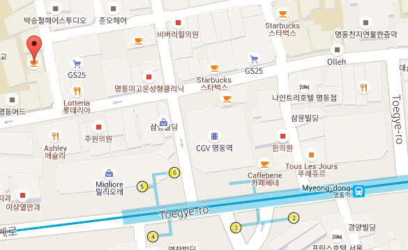 Take a subway to Myeongdong Station. (Exit 6)