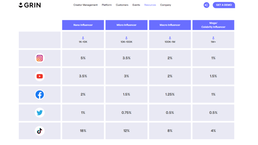 Besides Instagram, Grin has an engagement calculator for TikTok and YouTube. You can actually check what kind of influencer a person is, depending on the number of followers and engagement.
