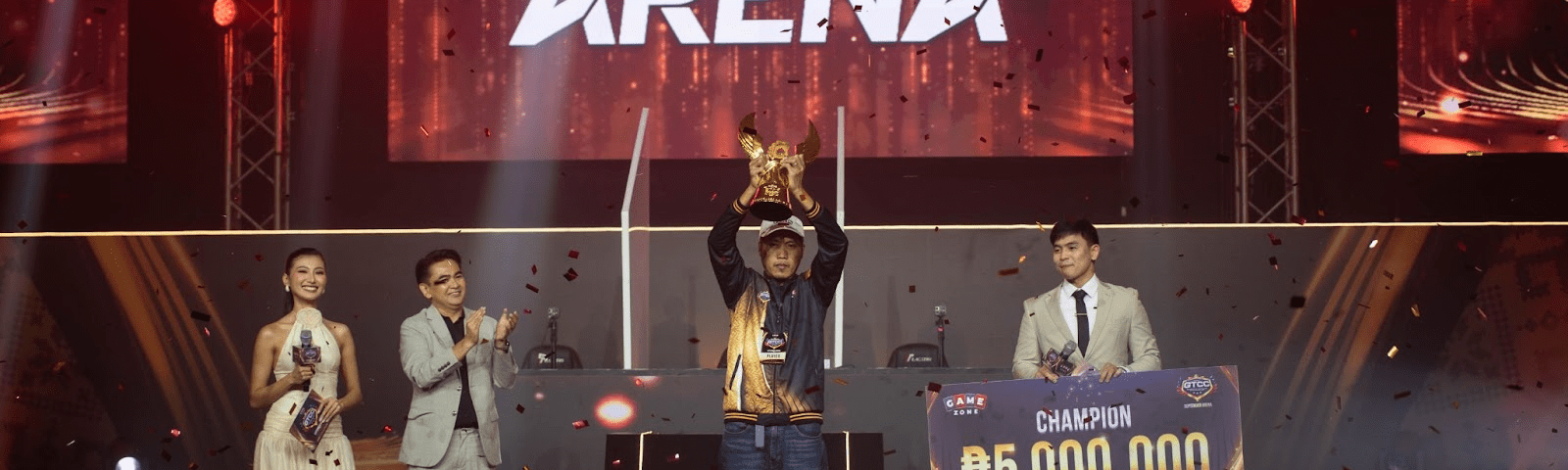 Jomar, the ultimate winner, received the grand prize of 5 million pesos and the golden trophy, with Mr. Rafael Jasper Vicencio, President of Gamemaster Integrated Inc., to present the prize and trophy to the grand champion of the GTCC: September Arena tournament.