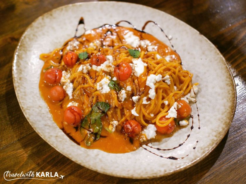 The hand-crafted pasta will definitely make you full. It has a big serving. This spaghetti is cooked Al Dente. The tomatoes make it sweet but there is a sour aftertaste because of the balsamic vinegar. The basil, mint, and buffalo cheese add more flavor to the spaghetti.